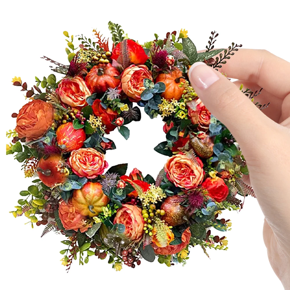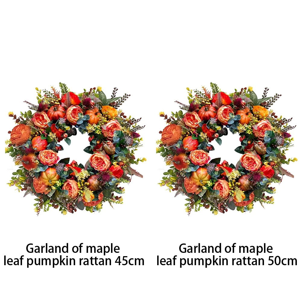 45/50cm Autumn Harvest Wreath Artificial Pumpkin Wreath Farmhouse Fall Garland for Thanksgiving Harvest Halloween Party Decor