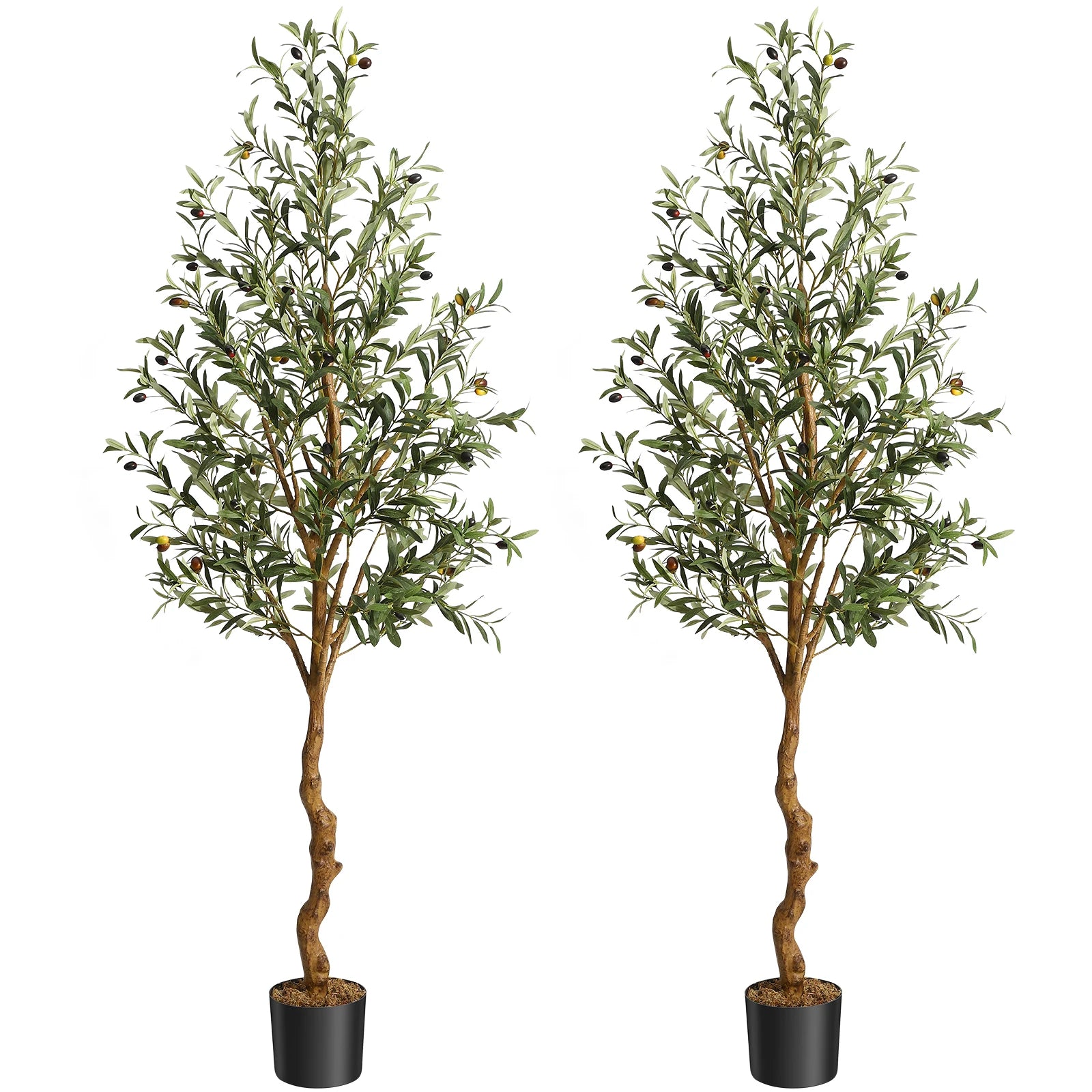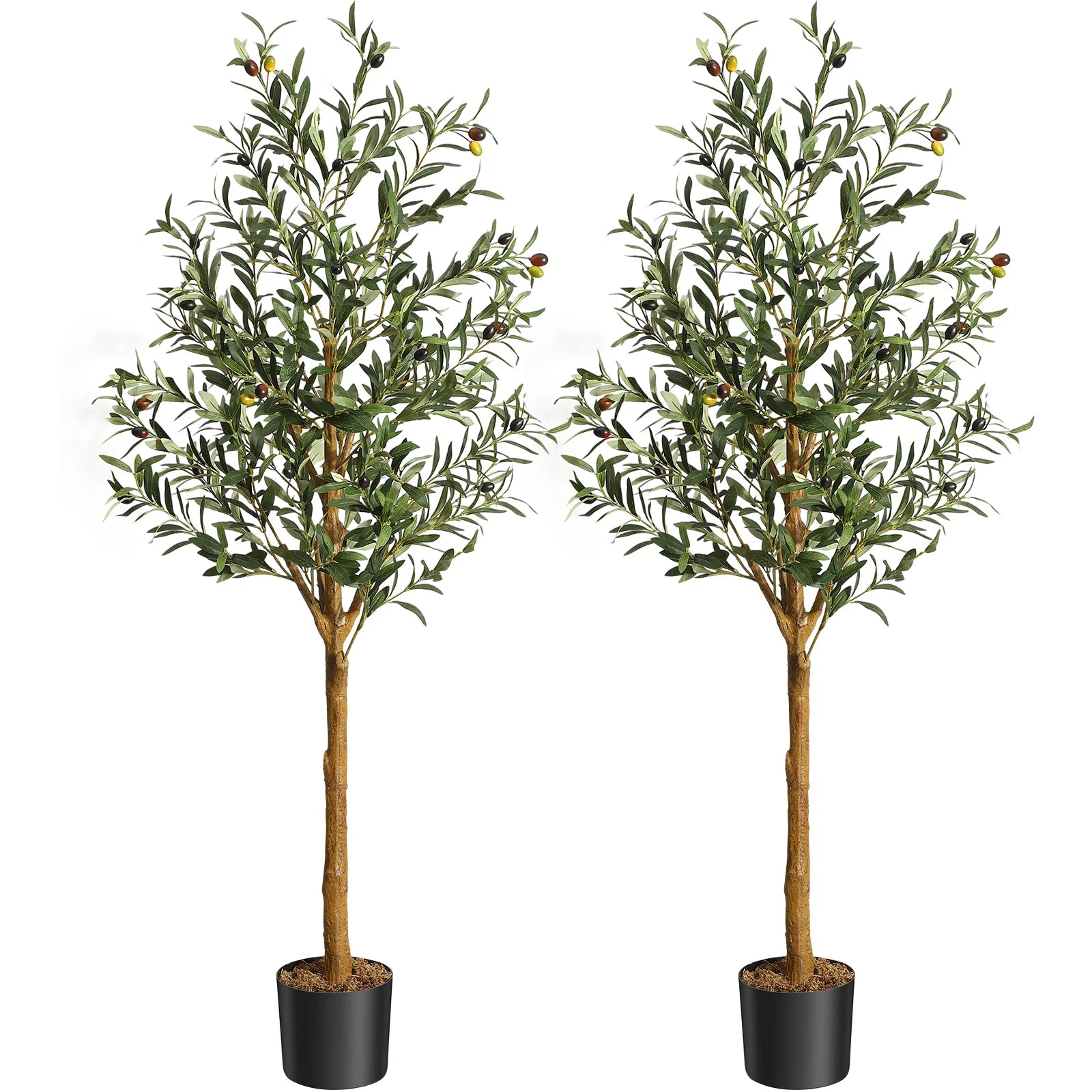 Artificial Olive Tree Silk Fake Potted Tree with Natural Wood Trunk and Lifelike Fruits for Home Office Living Room Indoor Decor