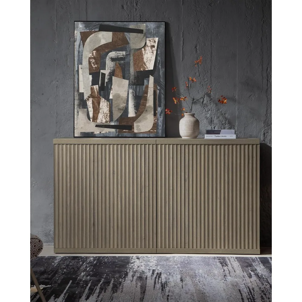 Buffet Cabinet with Storage Accent Sideboard Modern Credenza with Doors&Shelves Fluted Media Console Mid Century Coffe Bar Table