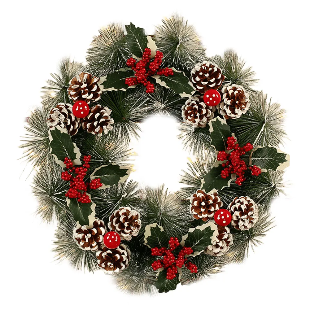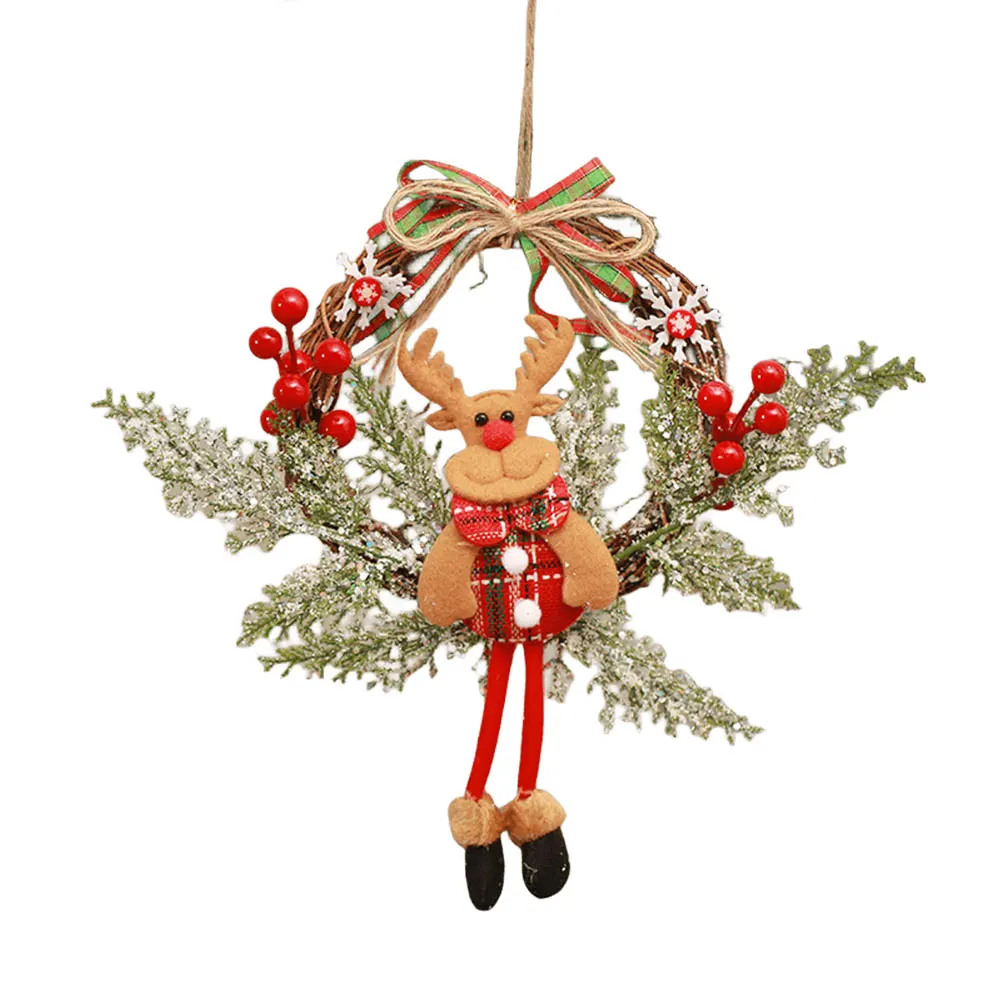Christmas Door Decor Wreaths Realistic Hanging Wreath Garland Decoration Versatile Bow/Berry/Santa/Reindeer for Home Party Decor