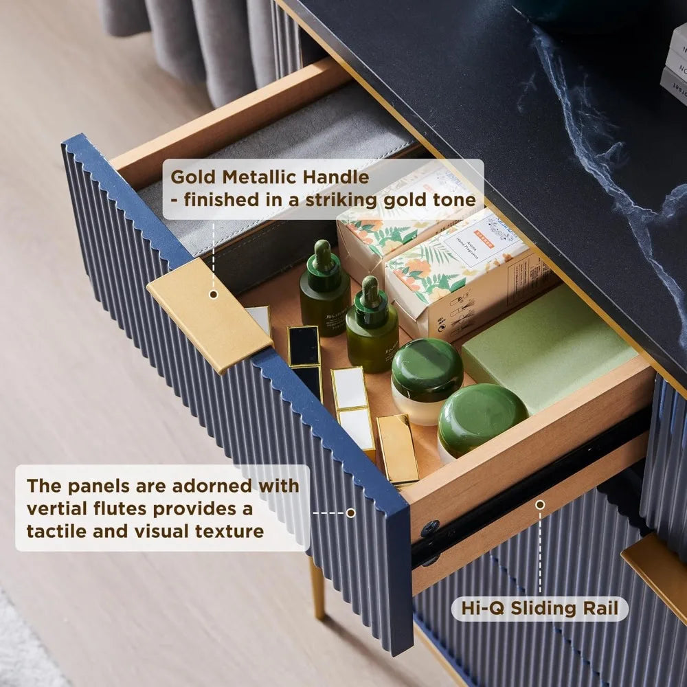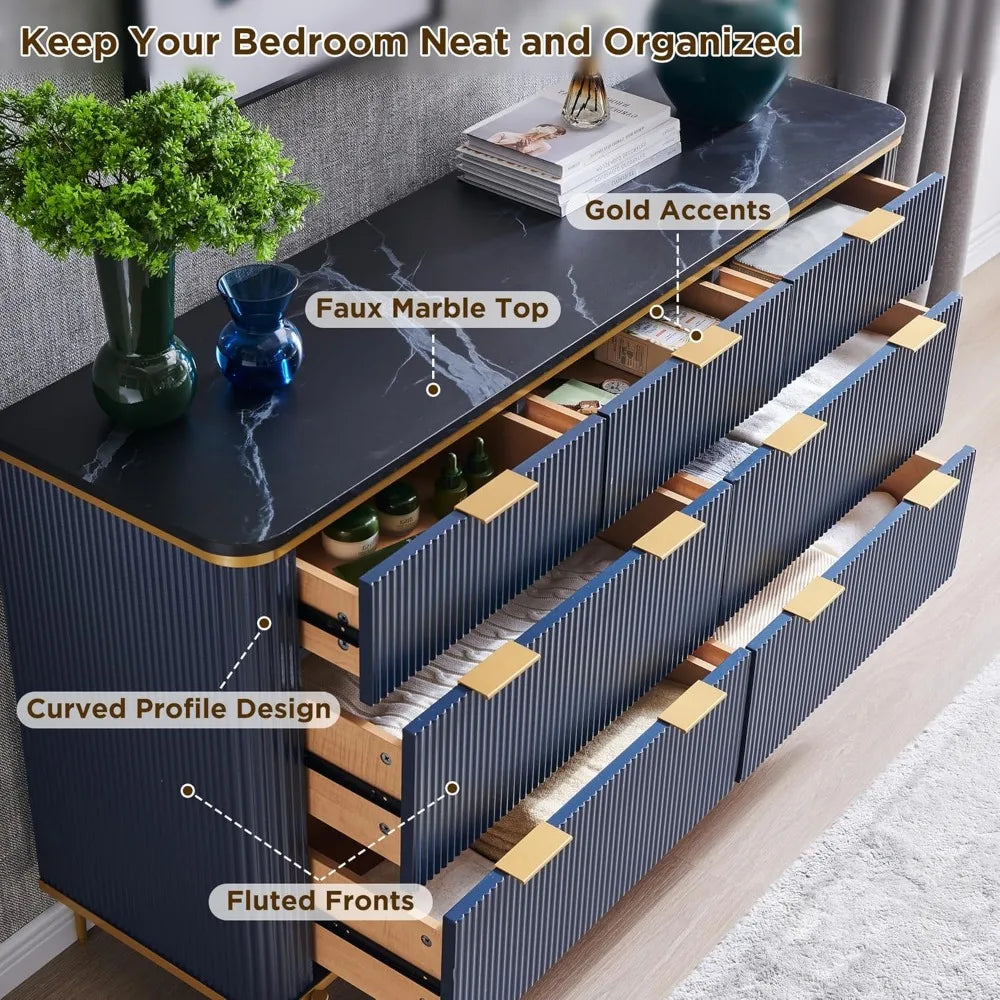 - Elegant Fluted Design: The modern dresser stands out with its fluted fronts on each drawer, adding a touch of sophistication and texture to the overall design. This detail-oriented approach enhances the visual appeal, making it a perfect fit for contemporary and minimalist decors. The fluting not only serves as an aesthetic feature but also subtly hides fingerprints and minor scratches, maintaining the dresser's pristine appearance over time.