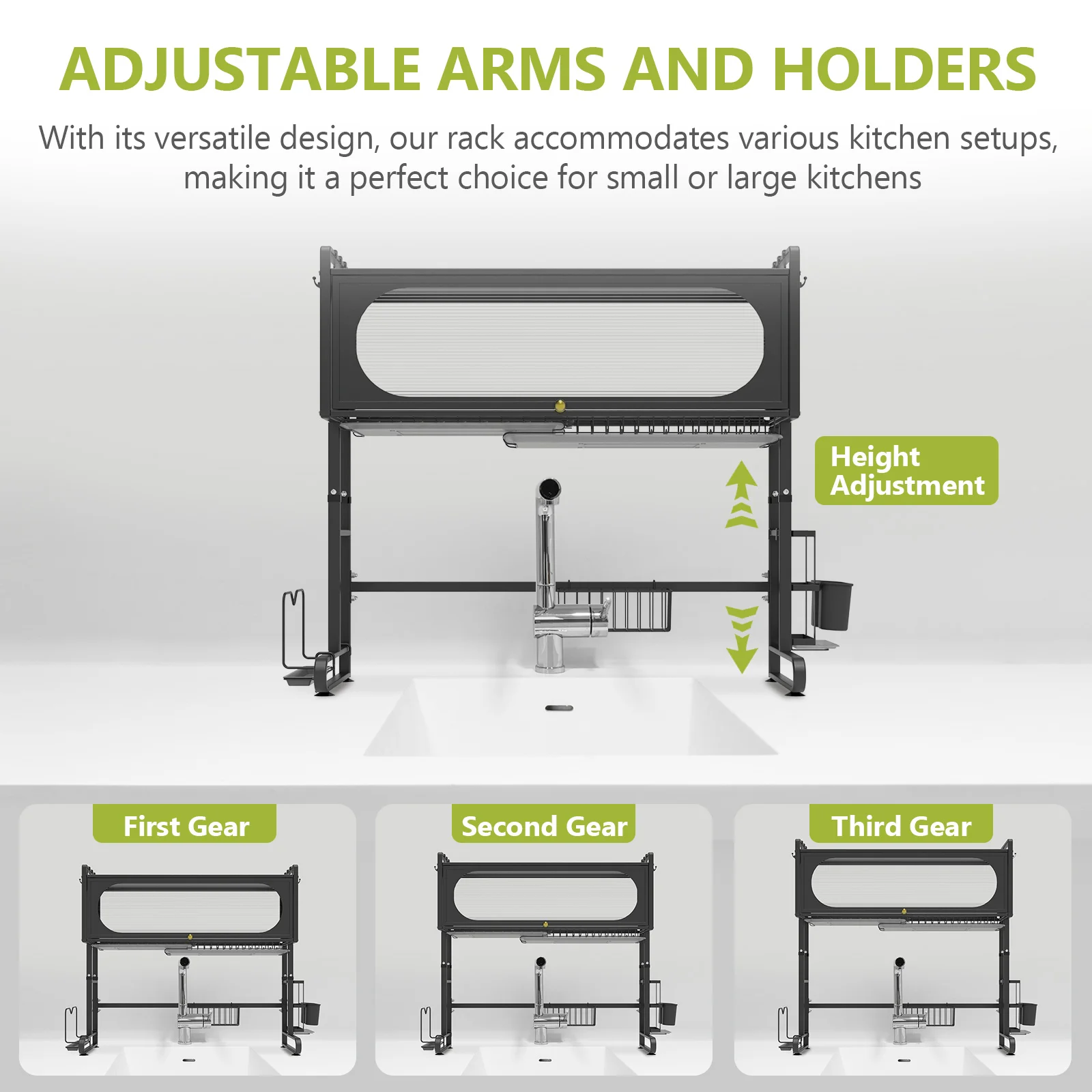 【Multi-Functional】The rack provides ample space to dry various dishes, including plates, bowls, cups, and utensils. Adjustable rods allow customization to fit different sink sizes, ensuring a comfortable and secure fit. Its versatile design makes it suitable for a wide range of kitchen setups, making it the perfect choice for both small and large kitchens.
