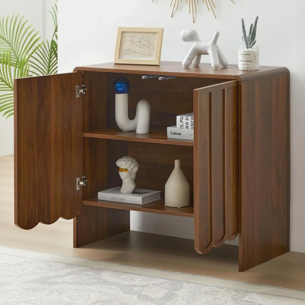 Modern Storage Cabinet: Elevate your living room's style with our uniquely designed buffet cabinet. Its wave-shaped door surface adds a touch of distinction, setting it apart from traditional sideboards. With a spacious 7inch clearance between the cabinet and legs, you can conveniently store small items like sweeping robots at the bottom. Upgrade your storage game with this modern marvel!